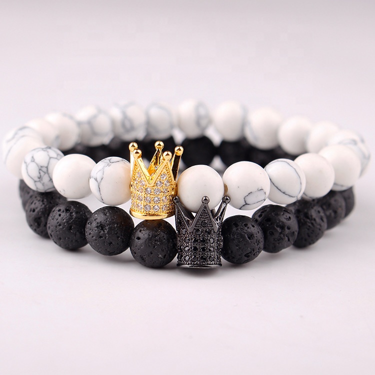 New Charm Trendy Imperial Golden&Black Crown Bracelets Men Natural Stone Beads Bracelet For Women Men Jewelry