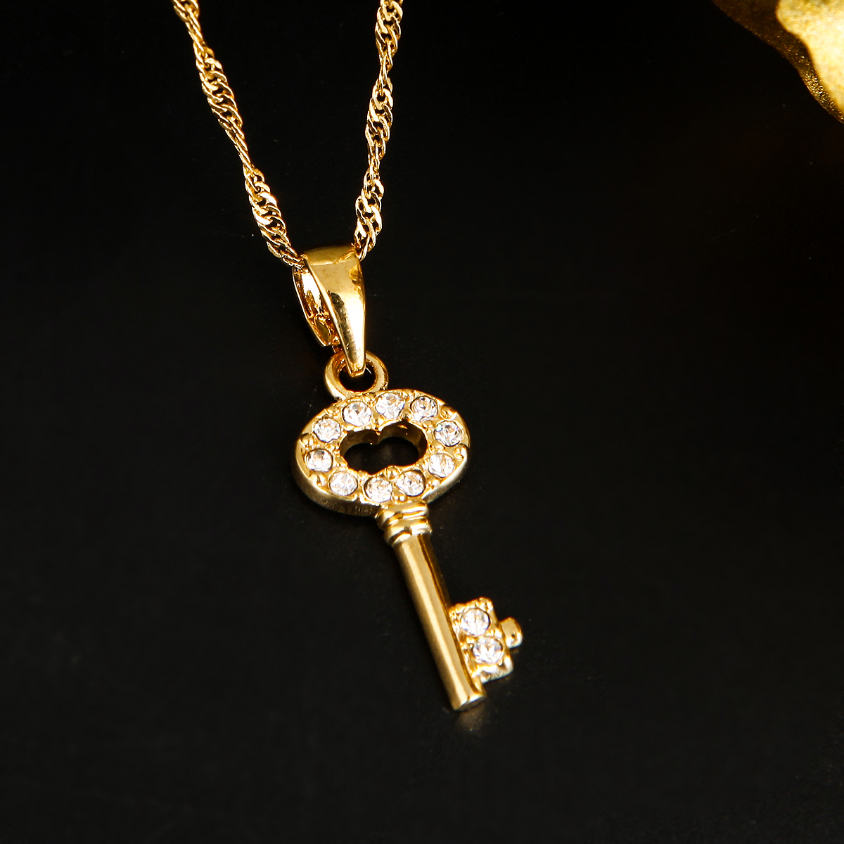 Gold Color Crystal Key Pendant Necklace Fashion Nice Key Pendant Necklace Elegant Jewelry Accessories For Women