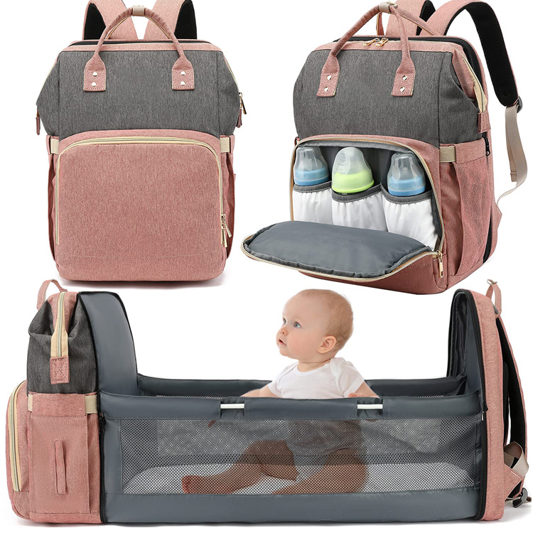 5 in 1 Multifunction foldable waterproof mummy baby diaper bag backpack with custom logo
