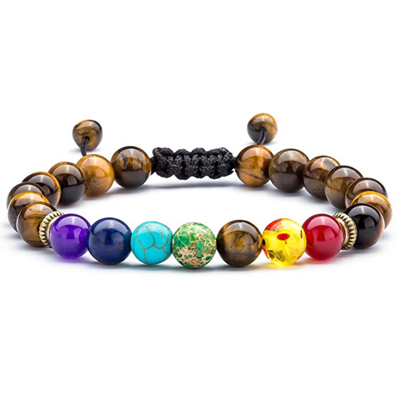 Chakra Handmade Macrame Braided Jewelry Prayer 8mm Turquoise Tiger Eye Bead Thread Beads Mens Accessories Bracelet