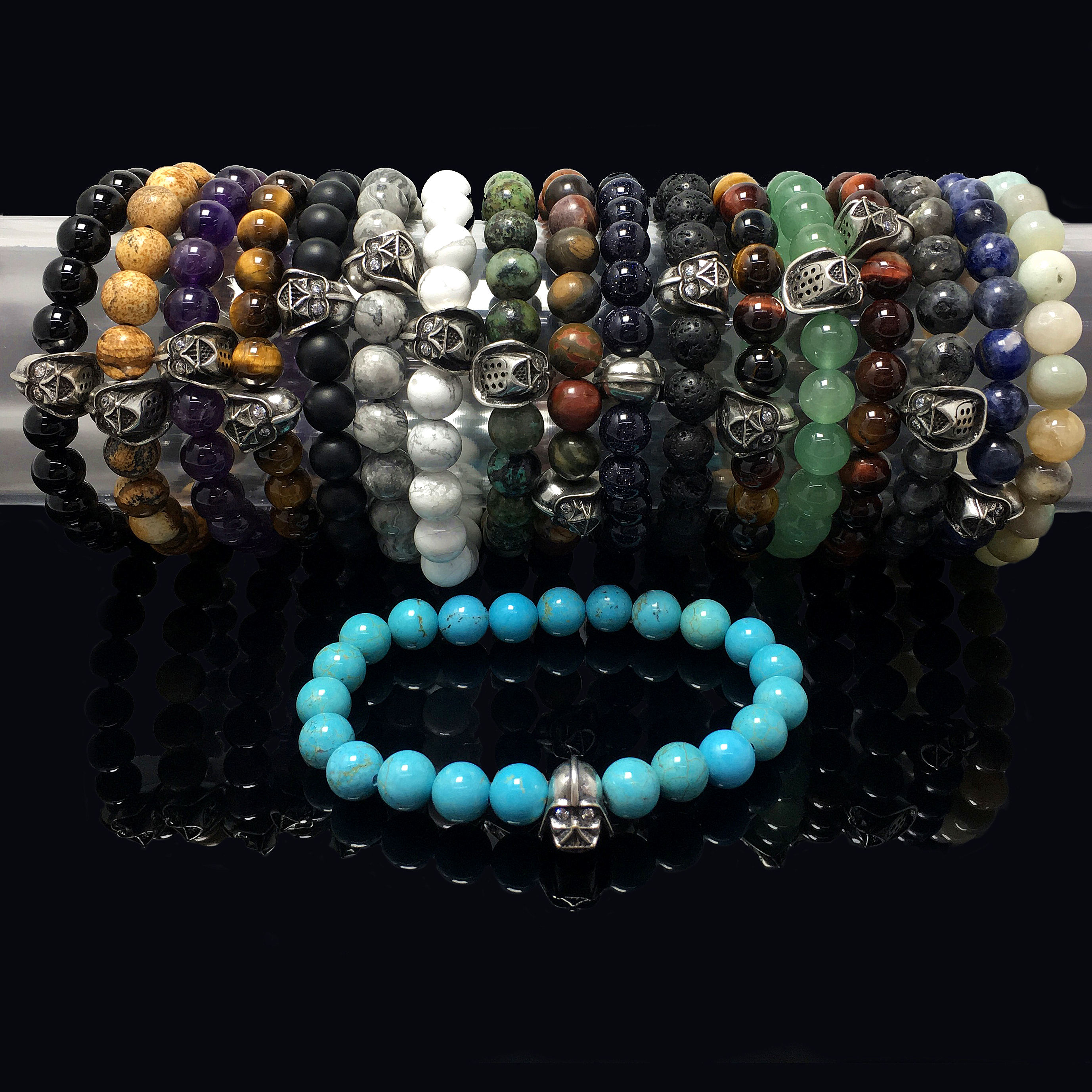 Gemstone Beaded Bracelets Custom Bead Crystal Healing Stones Bracelet Adjustable Imperial Darth Vader Design for Women and Men